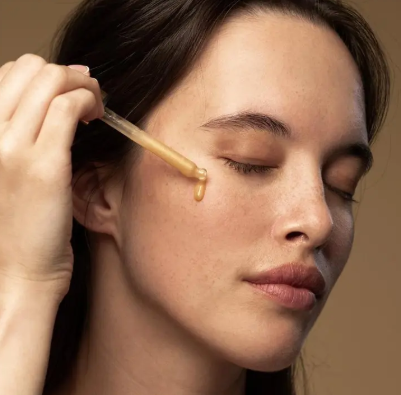 Massage a few drops into the face, neck, and décolletage using upward strokes.