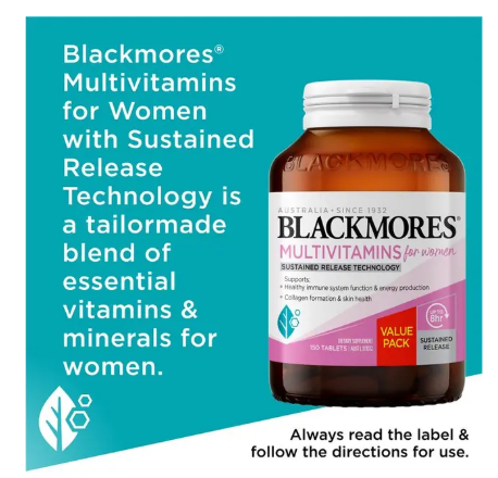 Support your health and vitality with Blackmores Multivitamins for Women, a specially formulated multivitamin designed for women. Using sustained-release technology, it gradually delivers essential vitamins and minerals throughout the day to support energy, immunity, skin health, mental focus, and overall wellbeing.