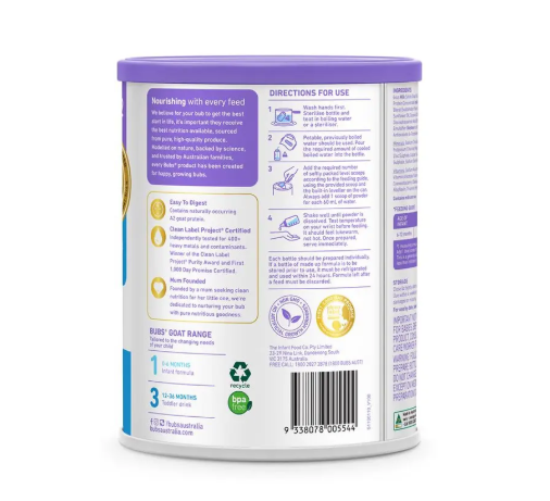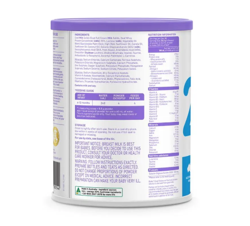 Bubs® Easy-digest Goat Milk Follow-on Formula Stage 2 is exclusively formulated for tiny Australian tummies aged 6 to 12 months.