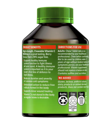Proudly Australian Made® and trusted by Australian families for over 85 years, Cenovis Chewable MEGA C 1000 mg is quality-tested during manufacturing to ensure consistency and potency. These tablets contain no added gluten, lactose, artificial colours, dairy products, or animal-derived products.*