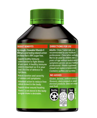 Proudly Australian Made® and trusted by Australian families for over 85 years, Cenovis Chewable MEGA C 1000 mg is quality-tested during manufacturing to ensure consistency and potency. These tablets contain no added gluten, lactose, artificial flavours, dairy products, or animal-derived products.*