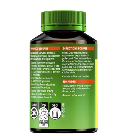 Proudly Australian Made® by Cenovis and trusted by Australian families for over 85 years, Cenovis Chewable MEGA C 1000 mg is quality tested during manufacturing to ensure consistency and potency. These tablets contain no added gluten, lactose, artificial flavours, dairy products, or animal-derived products.*