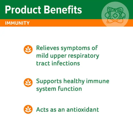 This comprehensive formula helps reduce the severity and duration of common cold symptoms and assists in relieving symptoms of mild upper respiratory tract infections. It also supports healthy immune system function. In addition, the ingredients provide antioxidant support, helping to reduce free radical damage to body cells.