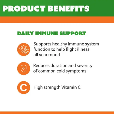 This chewable tablet helps support healthy immune system function, relieve the severity and duration of common cold symptoms, support collagen formation, assist wound healing, and act as an antioxidant to reduce free radicals—all in one convenient daily chew.