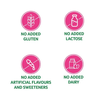 Clean Formula: No added gluten, lactose, artificial colours, flavours, sweeteners, or dairy