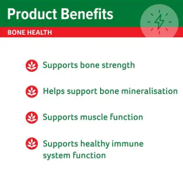 Assists Healthy Bone Development: Supports bone strength and calcium absorption.