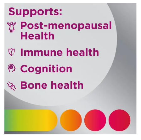 Supports immunity, cognition, bone health, and post-menopausal wellbeing