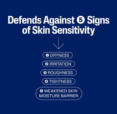 Defends Against 5 Signs of Skin Sensitivity: Helps combat dryness, irritation, roughness, tightness, and weakened moisture barrier