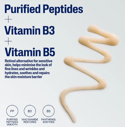 Formulated with a retinol alternative—purified peptides, this gentle yet effective eye serum targets visible signs of ageing and fatigue without irritating sensitive skin. The addition of Vitamin B3 (Niacinamide) and Vitamin B5 (Panthenol) helps strengthen the skin’s moisture barrier, while Rice Lees and Edelweiss Extracts improve skin tone and radiance.