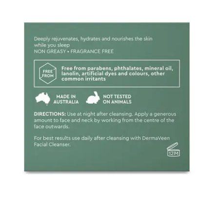 DermaVeen Regenerating Night Cream delivers deep hydration and nourishment while you sleep. Formulated with natural Colloidal Oatmeal, this rich cream helps rejuvenate dry, sensitive skin overnight. A blend of coconut oil and shea butter supports the skin’s natural nighttime repair process.