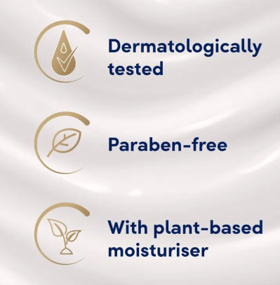 Gentle, plant-based moisturiser; dermatologically tested and paraben-free