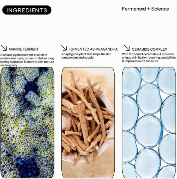Fermented Ashwagandha: Adaptogen that protects against premature aging, keeping skin calm, soft, and supple