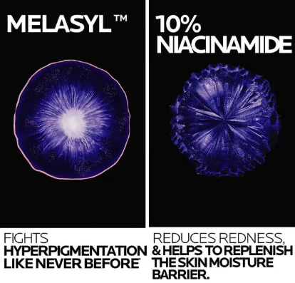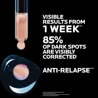 Anti-hyperpigmentation serum that targets dark spots, including persistent ones, post-acne marks, sun spots, and age spots.