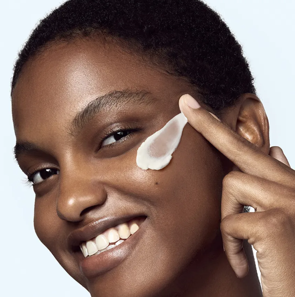 After cleansing, toning, and applying serum, smooth an even layer over the face morning and night.