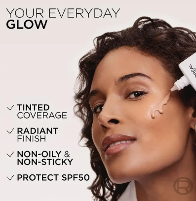 L'Oréal Paris Bright Reveal Tinted Daily Fluid SPF 50 Medium is a dermatologist-validated, lightweight tinted fluid that provides broad-spectrum SPF 50 protection while visibly brightening and evening skin tone. Enriched with 3% Niacinamide, light-reflecting pigments, and pearls, it helps reduce the appearance of dark spots and delivers a naturally radiant, even-toned complexion.
