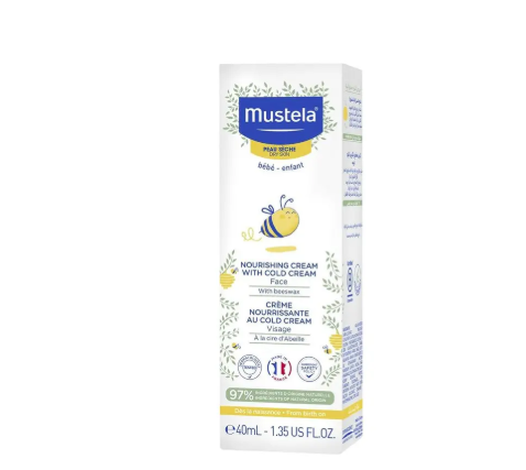 Specially formulated with Cold Cream and natural beeswax, this rich yet gentle cream nourishes, restores, and strengthens the skin barrier, leaving your baby’s face smooth, supple, and delicately scented with Mustela’s iconic fragrance.