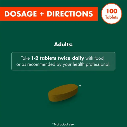 Adults: Take 1–2 tablets twice daily with food, or as recommended by your healthcare professional.