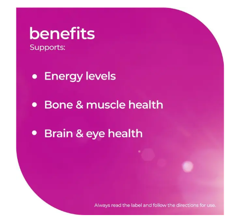 Supports energy, immunity, bone, brain, and eye health