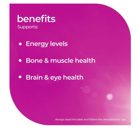 Vitamin D supports bone and teeth health, calcium absorption, and muscle function, especially when sun exposure is limited
