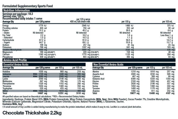 - Pre-workout fuel: 2 scoops (120g) with water 60min before training.
