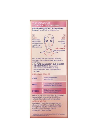 This non-sticky serum delivers visible results with a 3-zone lifting effect, leaving your skin firmer, tightened, and more youthful. Suitable for all skin types, including sensitive skin, it can be used morning and evening for best results. Apply on thoroughly cleansed skin before your Cellular day or night cream. Dermatologically tested and skin-compatible.