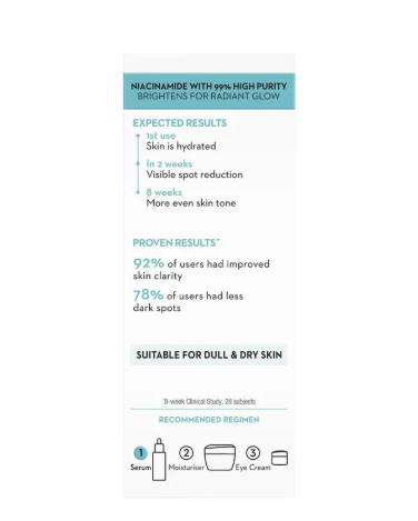 Niacinamide (Vitamin B3) – brightening, reduces pigmentation, improves skin barrier, minimizes pores.