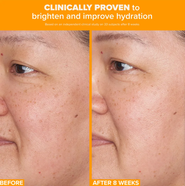 Vitamin C 5%: Brightens dullness, evens skin tone, hydrates, and boosts UV protection.