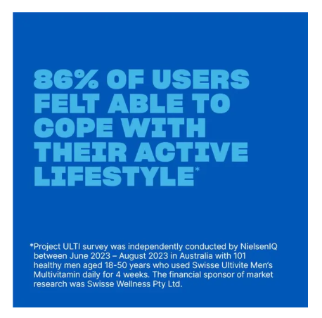Introducing Swisse Ultivite Men’s Multivitamin—expertly formulated to support the daily health needs of modern men. This advanced multivitamin combines essential vitamins and minerals, including B vitamins to help support energy production, Magnesium to support healthy muscle function, and Zinc to help maintain immune health. Designed for driven men, it helps make every day a productive one.