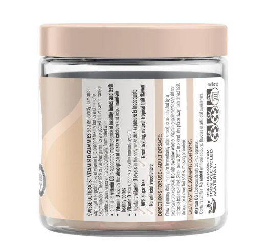 Swisse Ultiboost Vitamin D Gummies are formulated to help maintain healthy vitamin D levels when sun exposure is inadequate. Made with vitamin D3, these gummies support immune health, bone health, and the absorption of dietary calcium—all in a delicious tropical fruit flavour.